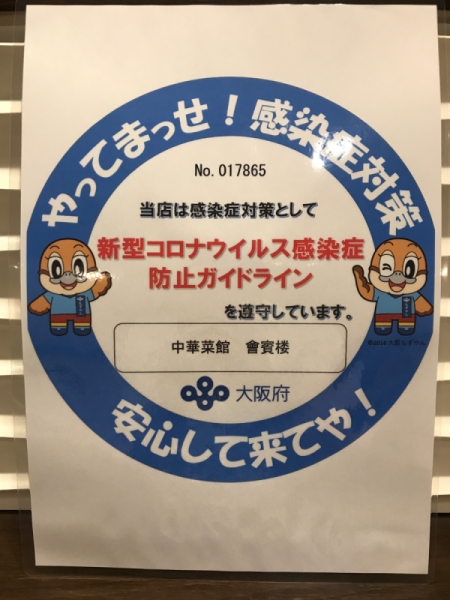 また大阪府のコロナ対策に同意して推奨しているステッカーも貼らせて頂いています。